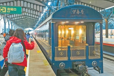 即将从哈尔滨站始发的“伊春号”旅游专列。 以上图片均为新华社记者王松摄