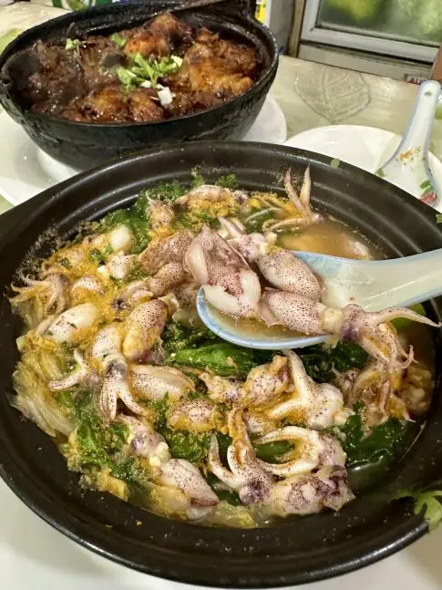 点了乌鱼花豆腐砂锅和砂锅排骨,汤底熬得鲜掉眉毛,配菜吸满汤汁,配着米饭吃能炫两大碗!